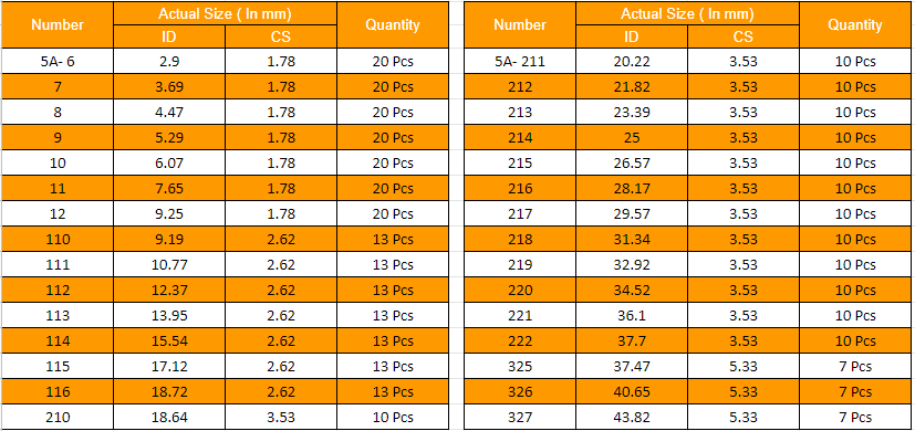 Kesaria 5A – Silicone O-Ring Repair Kit includes 30 assorted from 2.9mm to 43.82mm sizes and with 382 pcs. These silicone o-rings are well suit for oil & high-temperature resistance and are also good suitable to meet general repair requirements. Kesaria’s Silicone o-rings are very soft and flexible, easy to install, and widely used as a sealing tool.