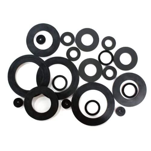 Washers can be specified in ANSI nominal sizes or ANSI metric sizes. Important size dimensions to consider when specifying washers include Inside Diameter, Outside Diameter, Thickness or working Height, and rated or working load. Materials of construction include Aflas, FKM or VITON, SILICON, EPDM, NBR, NEOPRENE, PTFE, PU, SBR & NATURAL. The hardness rating on a Shore A scale for Washers can be 30 ~ 95 Durometer. Exact specifications should be clarified by our engineers, as the chemical and physical properties of Washers can differ based on manufacturing technique.
